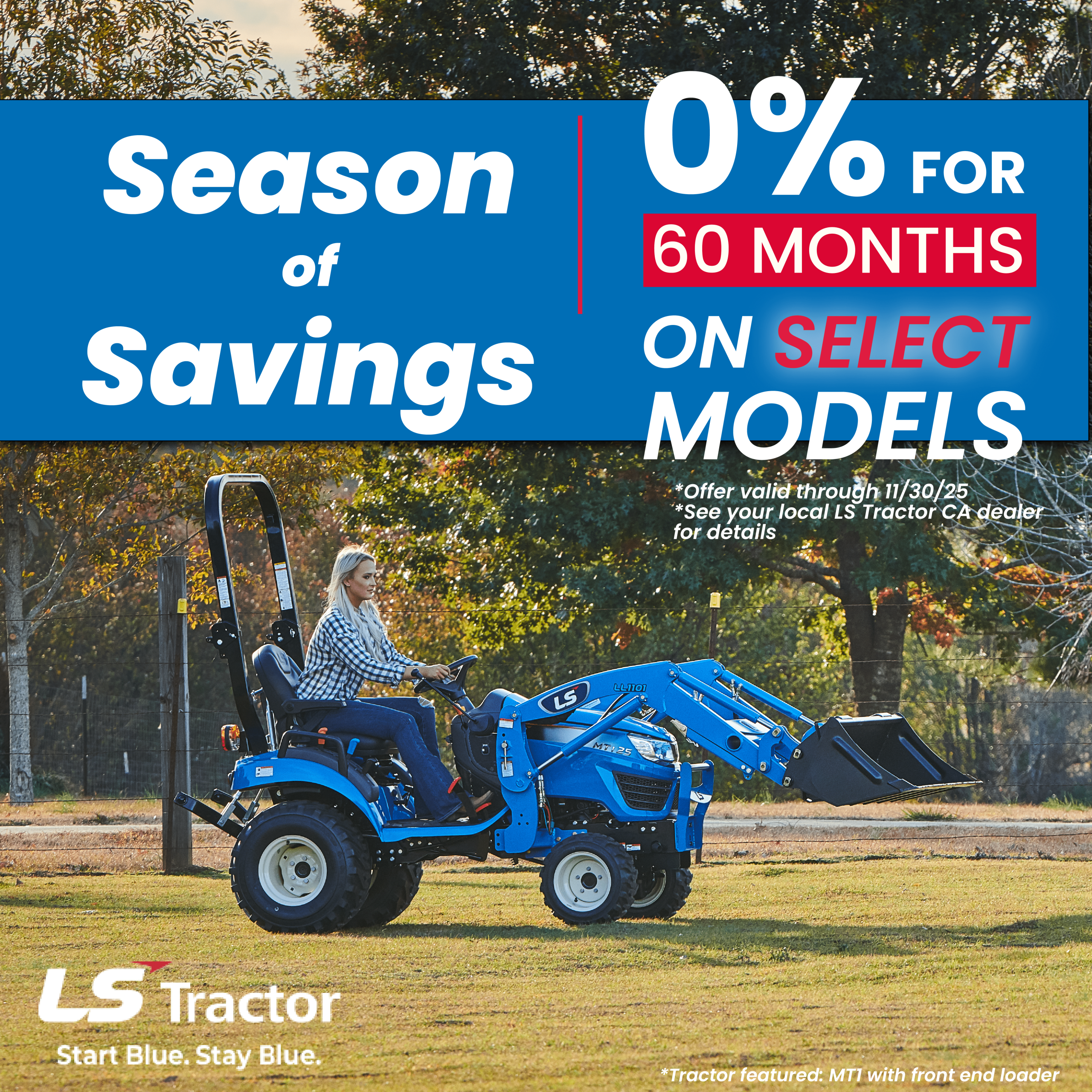 For a limited time, LS Tractor Canada is offering 0% for 60 months on select models. We can’t wait to welcome you to the LS Tractor Family. Just remember: once you Start Blue and see our amazing programs and service, you’ll want to Stay Blue forever.