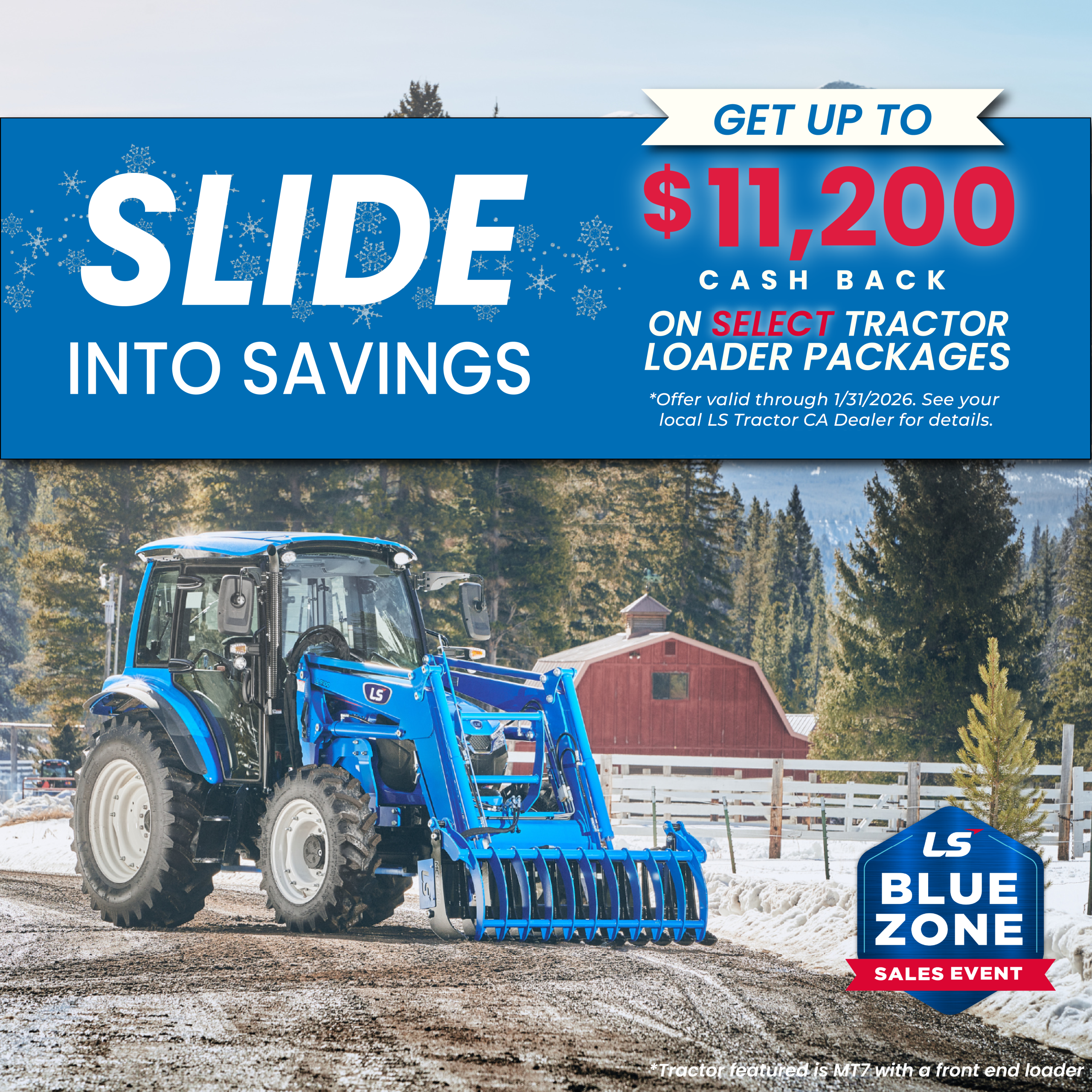 Offer available for a limited time only. Offer only valid upon purchase of a new qualifying tractor from a participating dealer’s in-stock inventory. Subject to participating Canadian dealer participation and participating dealer inventory. Some exceptions apply. This material is for descriptive purposes only. LS Tractor USA, LLC disclaims all representations and warranties, express or implied, or any liability from the use of this material. Offer may not be valid in all provinces or situations. Residency restrictions may apply. All promotions and terms may change or end at any time without notice. Additional terms and conditions may apply. See participating dealer for details.  For complete warranty, disclaimer, safety, incentive offer and product information, see participating dealer. Expires January 31st, 2026.