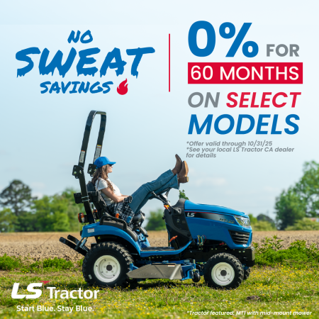 Contact your local participating LS Tractor dealer today! For a limited time, LS Tractor Canada is offering 0% for 60 months on select models. We can’t wait to welcome you to the LS Tractor Family. Just remember: once you Start…